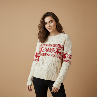 Women’s Cozy Relaxed Knit Reindeer Holiday Sweater